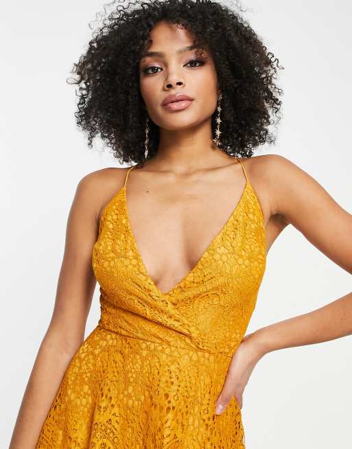 ASOS DESIGN Mini Ballkleid aus Spitze in Senfgelb mit Ruckenschnurung Very well made.