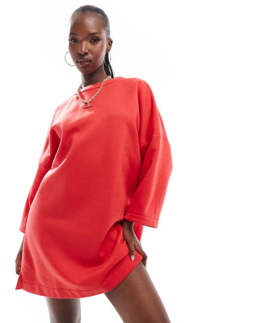 ASOS DESIGN Tief sitzendes Mini Sweatshirtkleid in Rot ASOS Very well made.