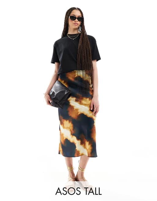 ASOS DESIGN Tall satin bias cut midi skirt in leopard print Very well made.
