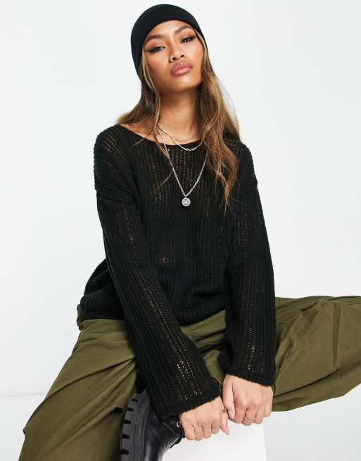 ASOS DESIGN longline sweater in open stitch in black ASOS Very well made.
