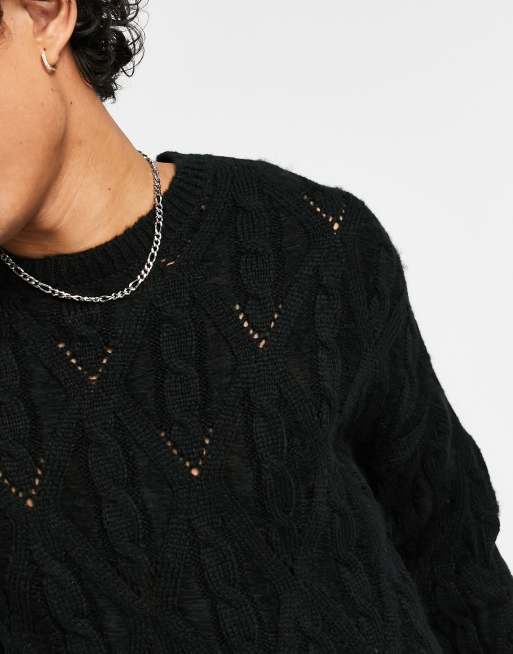 ASOS DESIGN oversized knitted sweater with laddering detail in black ASOS Very well made.