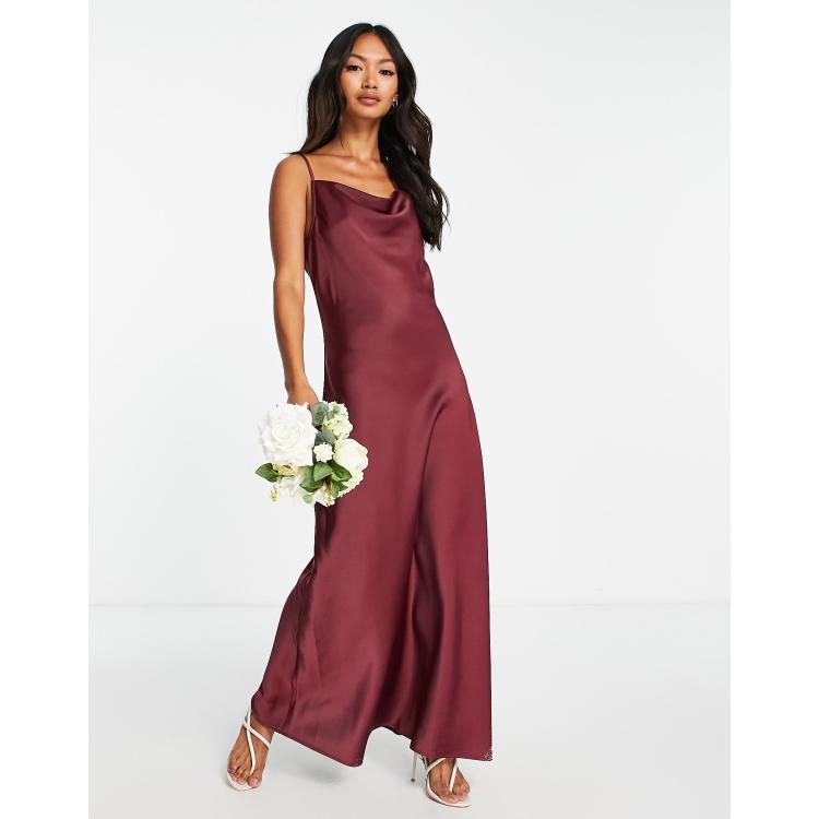 ASOS DESIGN lace and pleat bardot maxi bridesmaid dress Oxblood Red myonewedding Very well made.