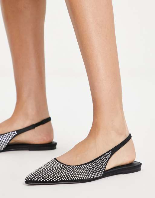 ASOS DESIGN Lala Chaussures plates pointues a strass et bride arriere Noir argente ASOS Very well made.