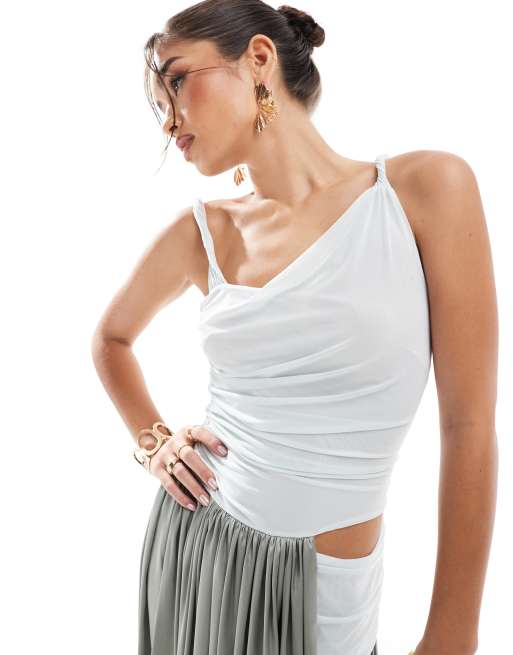 ASOS DESIGN colour block midi dress with satin drape skirt in blue grey Very well made.