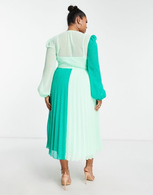 ASOS DESIGN Curve dobby twist front pleated midi dress in green colourblock ASOS Very well made.