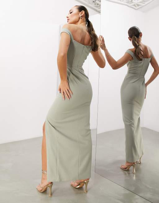 Rent Asos Edition Crepe Bardot Column Maxi Dress With Split In Dusky Blue Hirestreet Very well made.