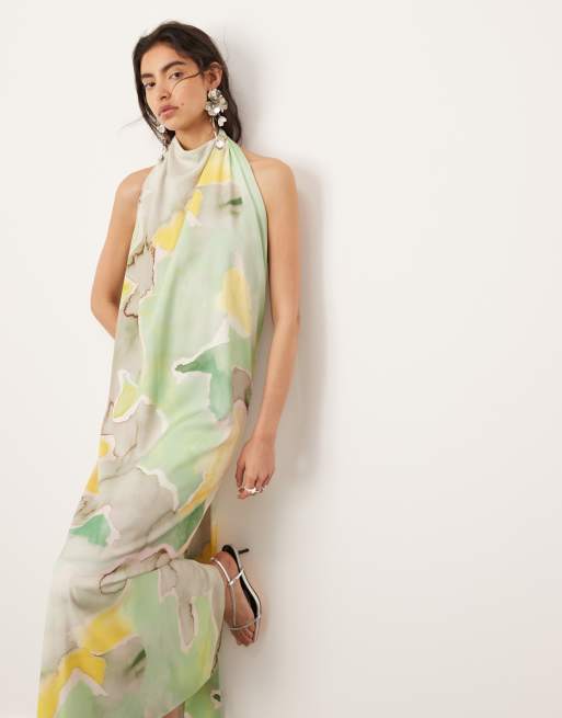 ASOS EDITION halterneck midi dress with drape detail in marble print Very well made.