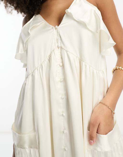 ASOS DESIGN satin strappy smock midi dress with tier hem and button front in ivory ASOS Very well made.