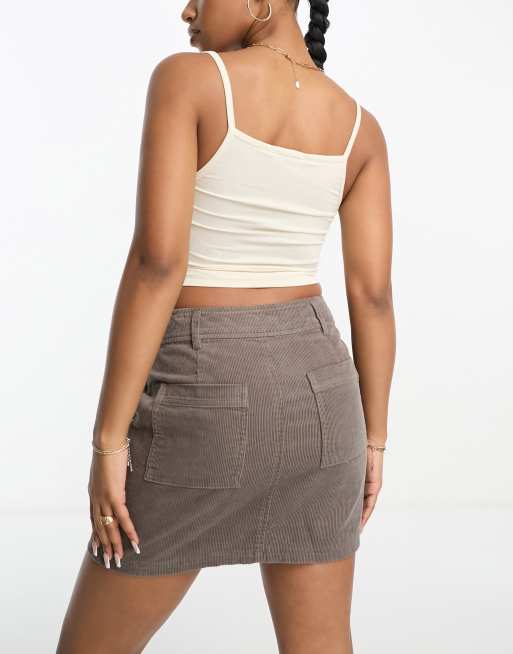 ASOS DESIGN Hourglass Mini jupe trapeze en velours cotele avec poches Taupe ASOS Very well made.