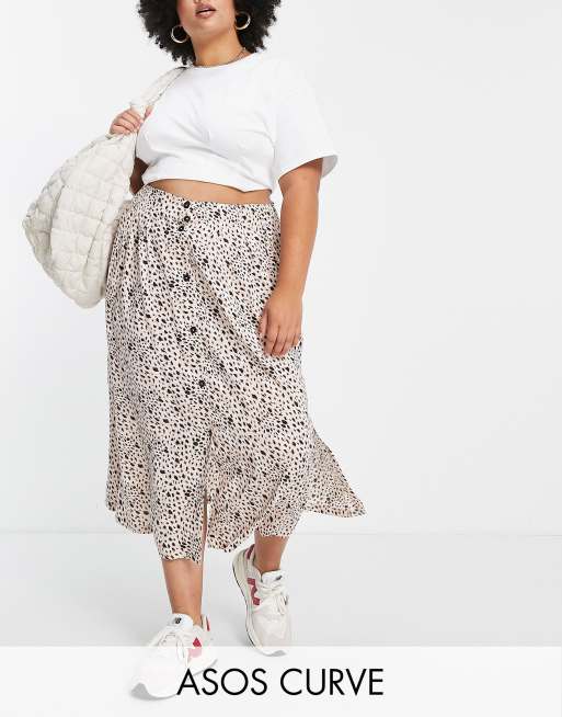 ASOS DESIGN Curve button up midi skirt with deep pocket detail in animal print Very well made.