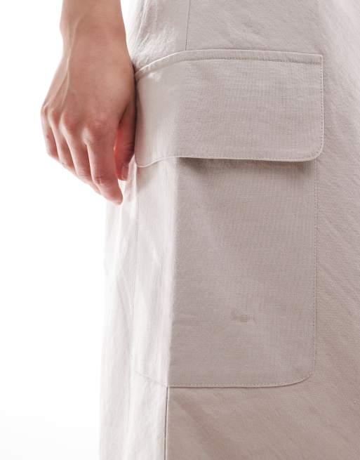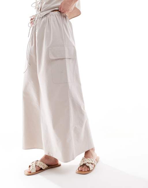 ASOS DESIGN Circular Design Collection drawstring waist pocket detail midi skirt in off white ASOS Very well made.