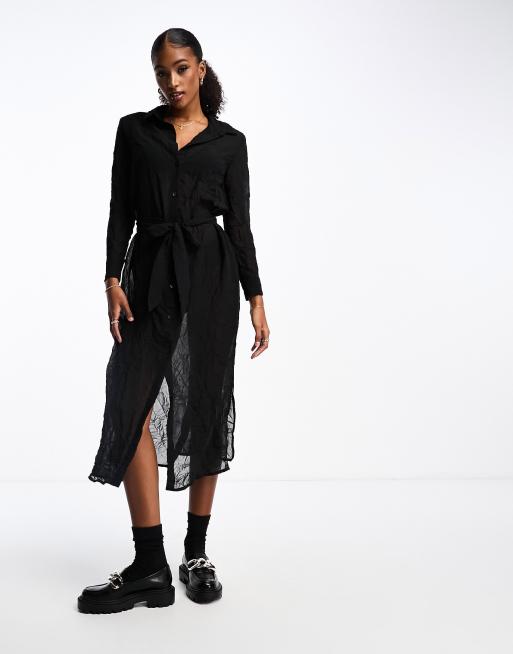 Monki button front shirt dress with tie waist in black Very well made.