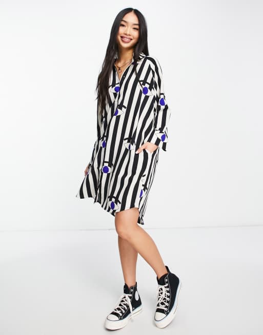 Monki polyester mini shirt dress in stripe eye print BLACK Very well made.