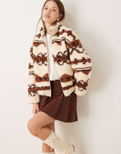 New Look borg zip through jacket in brown Very well made.