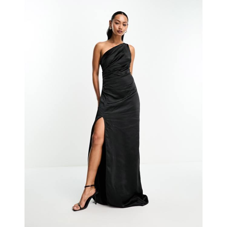 Pretty Lavish Amelia ruched one shoulder satin maxi dress in black ASOS Very well made.