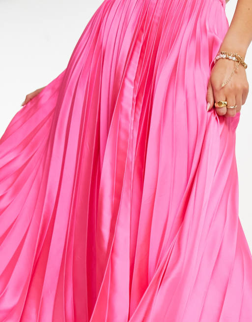ASOS DESIGN satin pleated midi skirt in hot pink Very well made.
