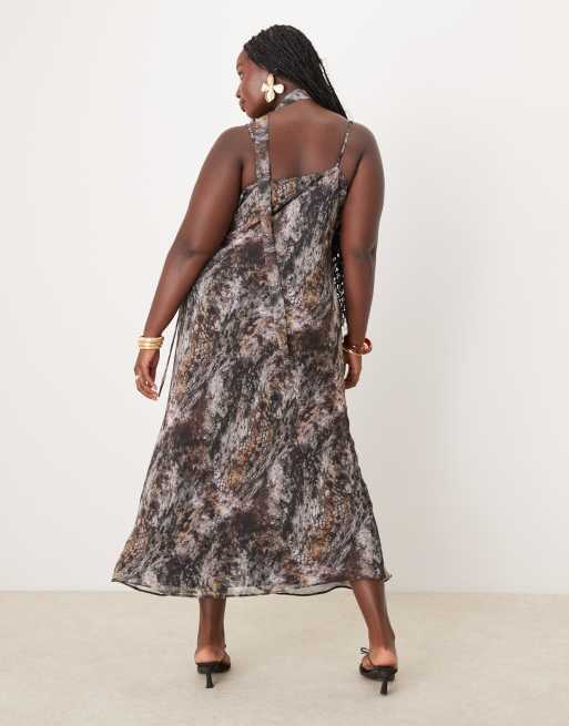 ASOS DESIGN Curve long sleeve ruffle bias maxi dress with cape detail in black floral print Very well made.