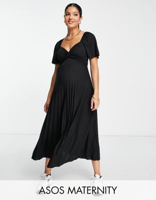 ASOS DESIGN Maternity pleated knot detail midi dress in black Very well made.