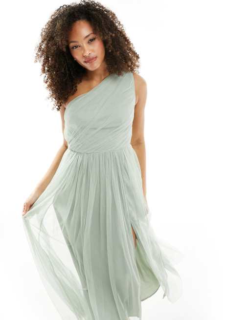 Anaya Bridesmaid tulle one shoulder maxi dress in sage green Very well made.
