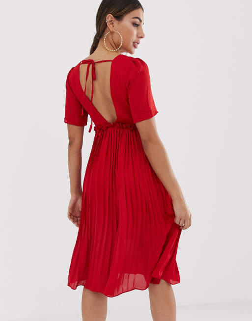 ASOS Pleated Bodice Strappy Pleat Midi Dress With Tie Back Detail in Red Lyst Very well made.