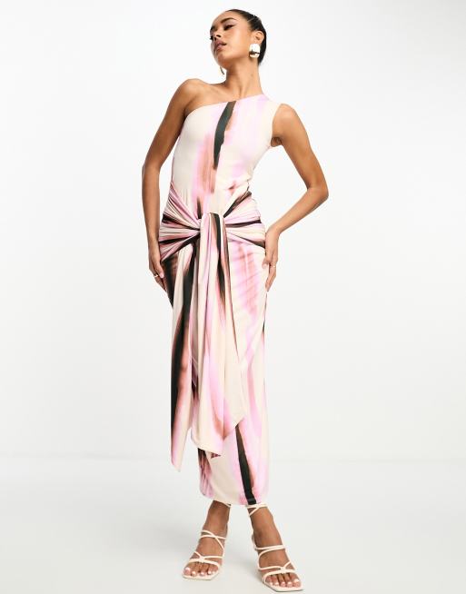 ASOS DESIGN Robe asymetrique longueur mollet imprimee avec ceinture nouee oversize ASOS Very well made.