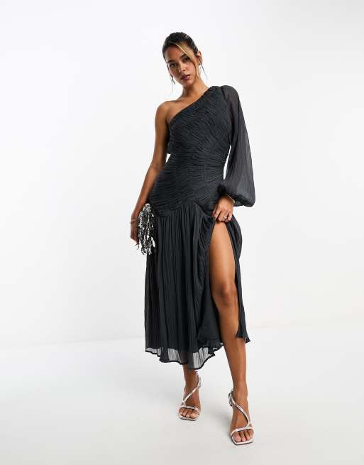 ASOS DESIGN Robe asymetrique mi longue a fronces Anthracite Very well made.