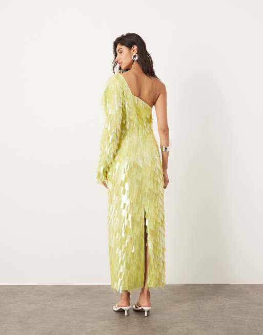 ASOS EDITION Robe asymetrique mi longue entierement ornementee Vert citron Very well made.