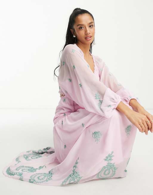ASOS DESIGN L invitee Robe longue drapee sur le cote a fines bretelles et sequins Vieux rose Very well made.