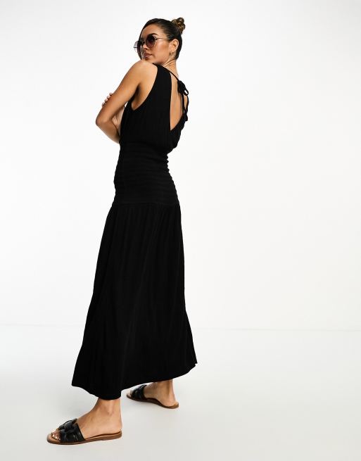 ASOS DESIGN crinkle v neck maxi smock dress with shirred waist in black Very well made.