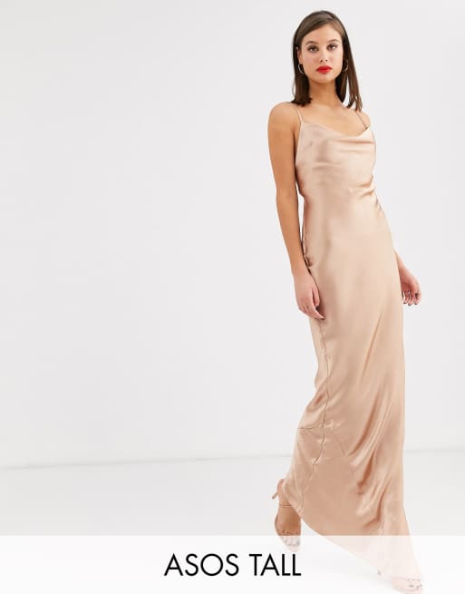 ASOS DESIGN Tall cami slip maxi dress in high shine satin with lace up back Very well made.