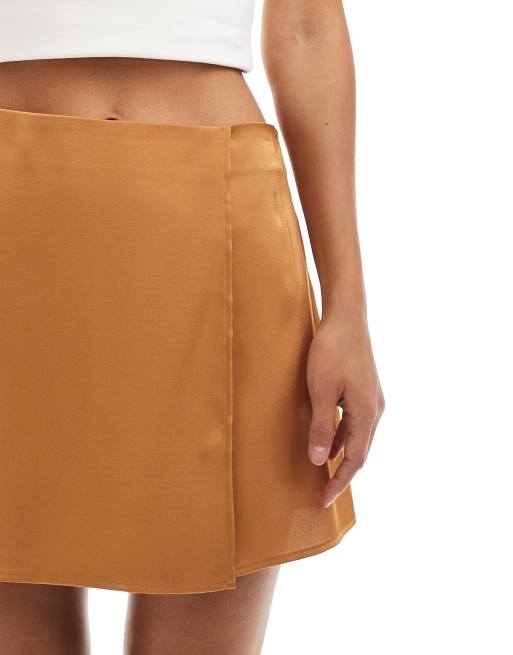 ASOS DESIGN satin wrap mini skirt in golden dusk ASOS Very well made.