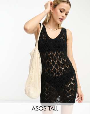 ASOS DESIGN knitted macrame mini dress with fringe dress in stone ASOS Very well made.