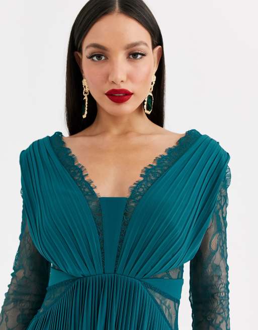 ASOS DESIGN pleated dobby chiffon wrap button detail maxi dress in teal green ASOS Very well made.