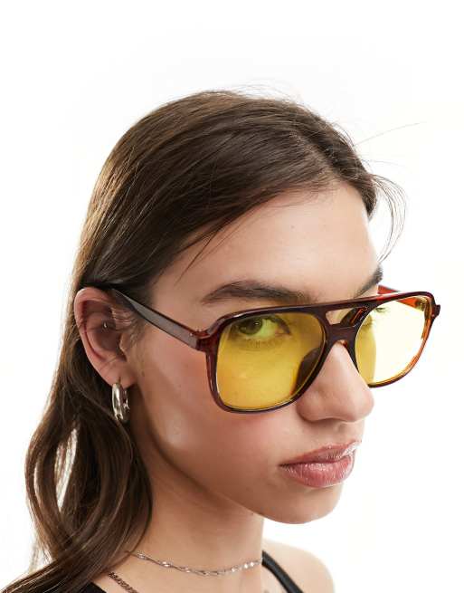 ASOS DESIGN fine frame aviator fashion glasses with yellow lens ASOS Very well made.