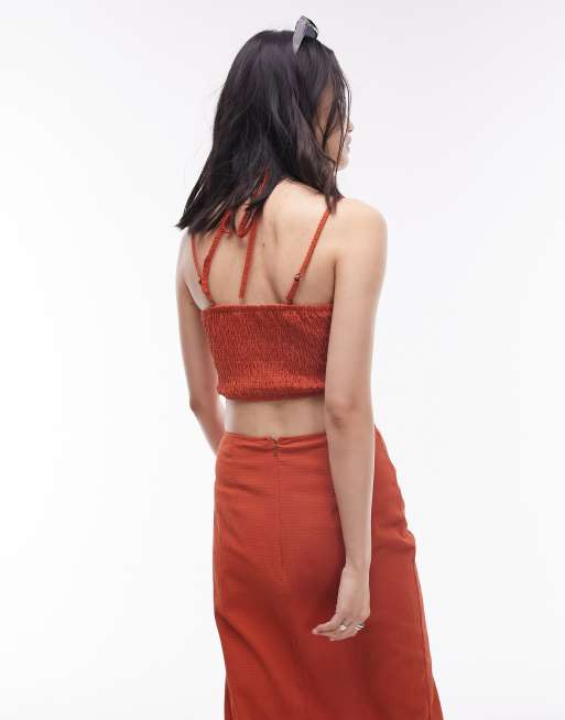 topshop brown crop top with silver chain backless detail Size 10 eBay Very well made.