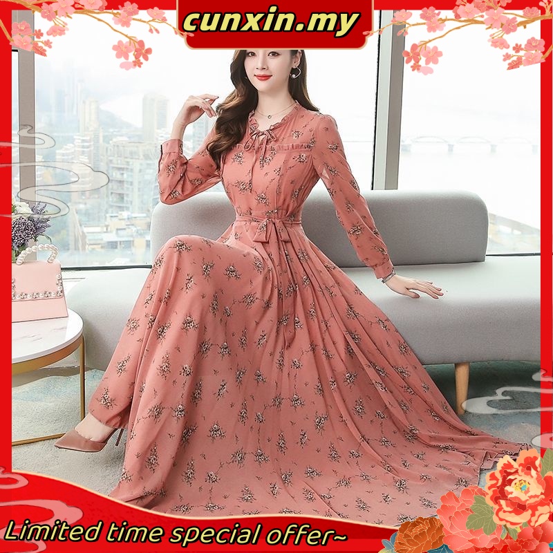 baju dress long dress korean style baju perempuan women dress baju wanita Slim long dress with big hem print long sleeve Lazada Very well made.