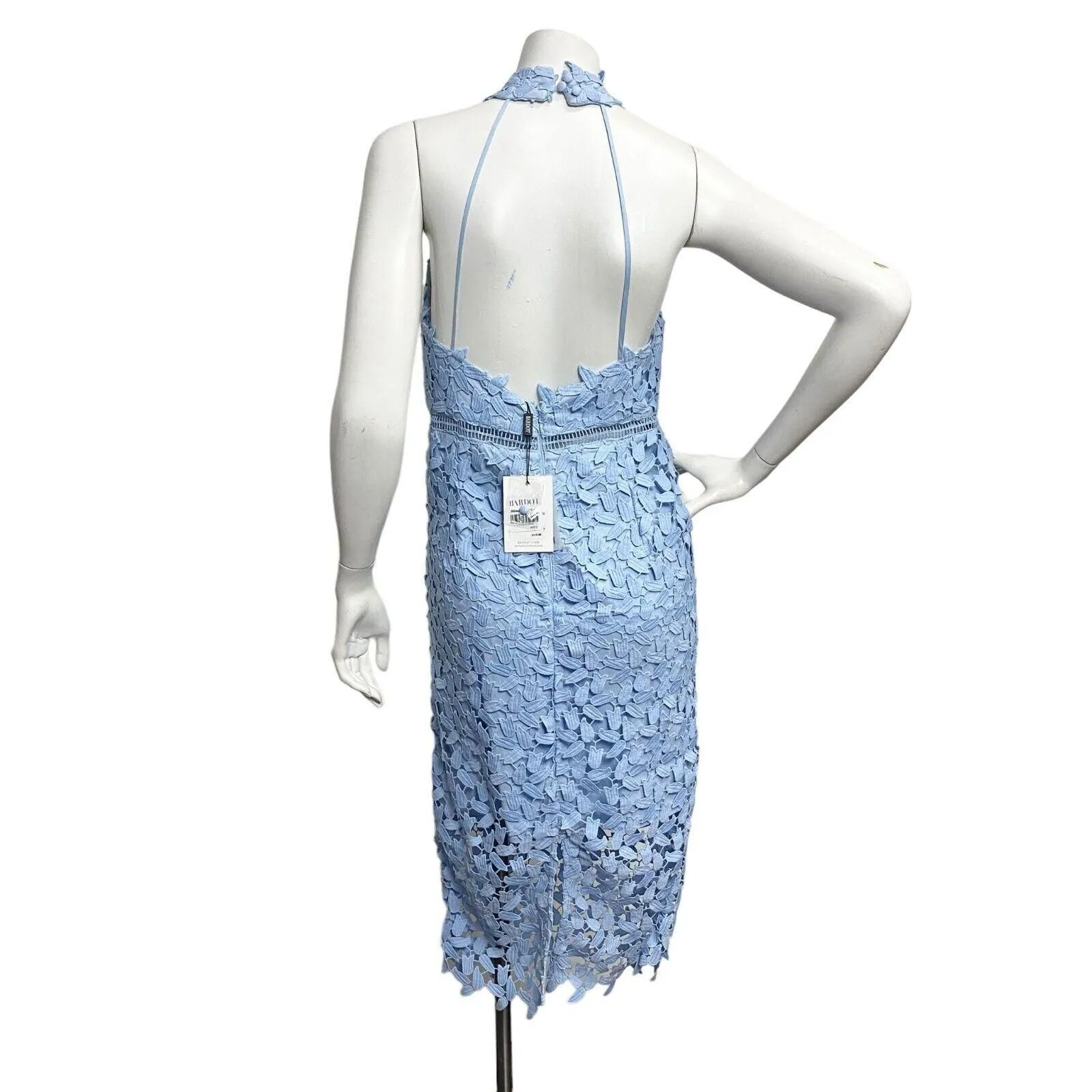 Bardot Women s Past Blue Bodycon Halter Lace Dress Size Small US Formal Guest Whatnot Buy Sell Go Live Very well made.