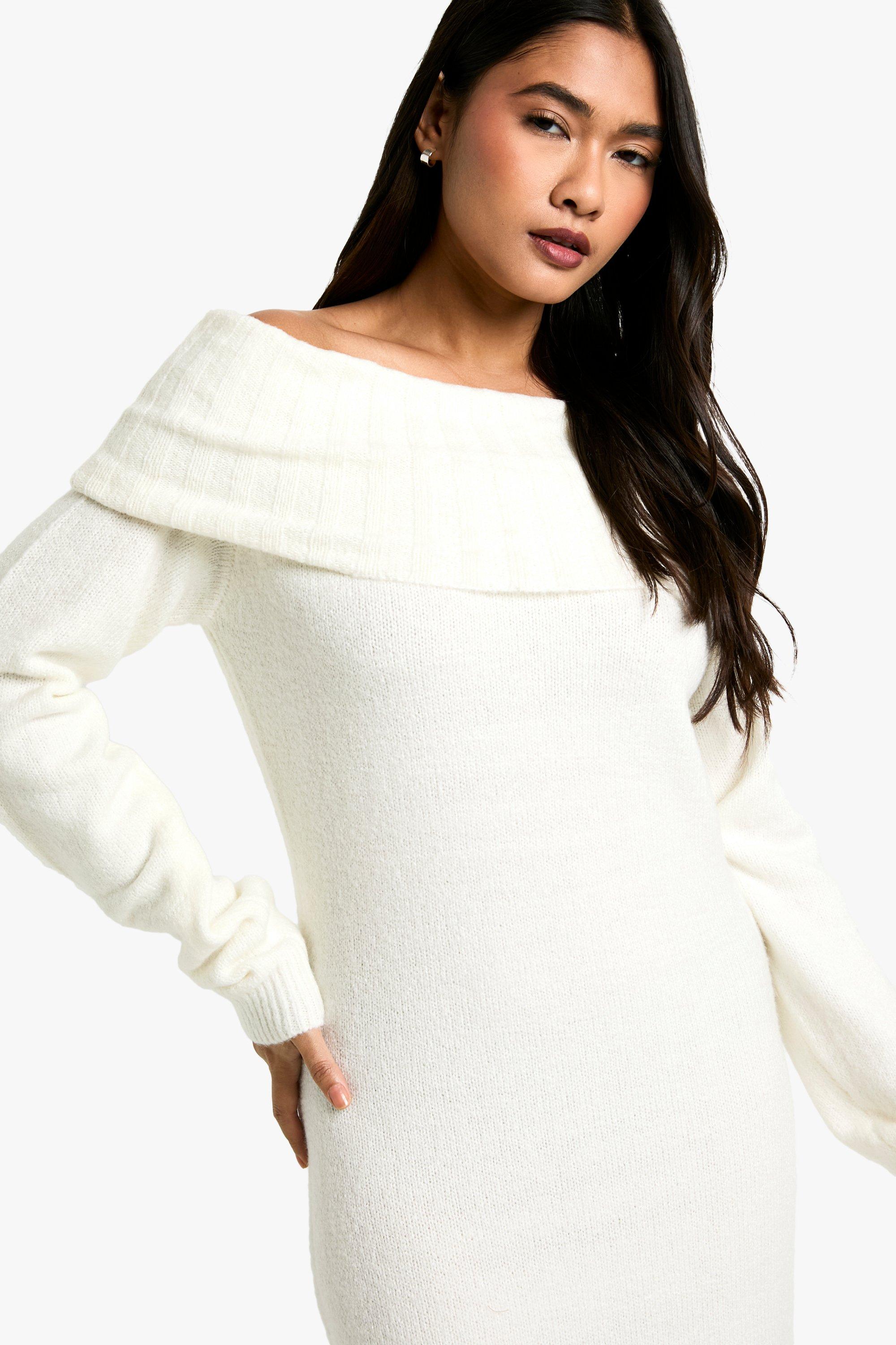 boohoo Premium Oversized Bardot Neckline Maxi Sweater Dress Cream Size L Very well made.