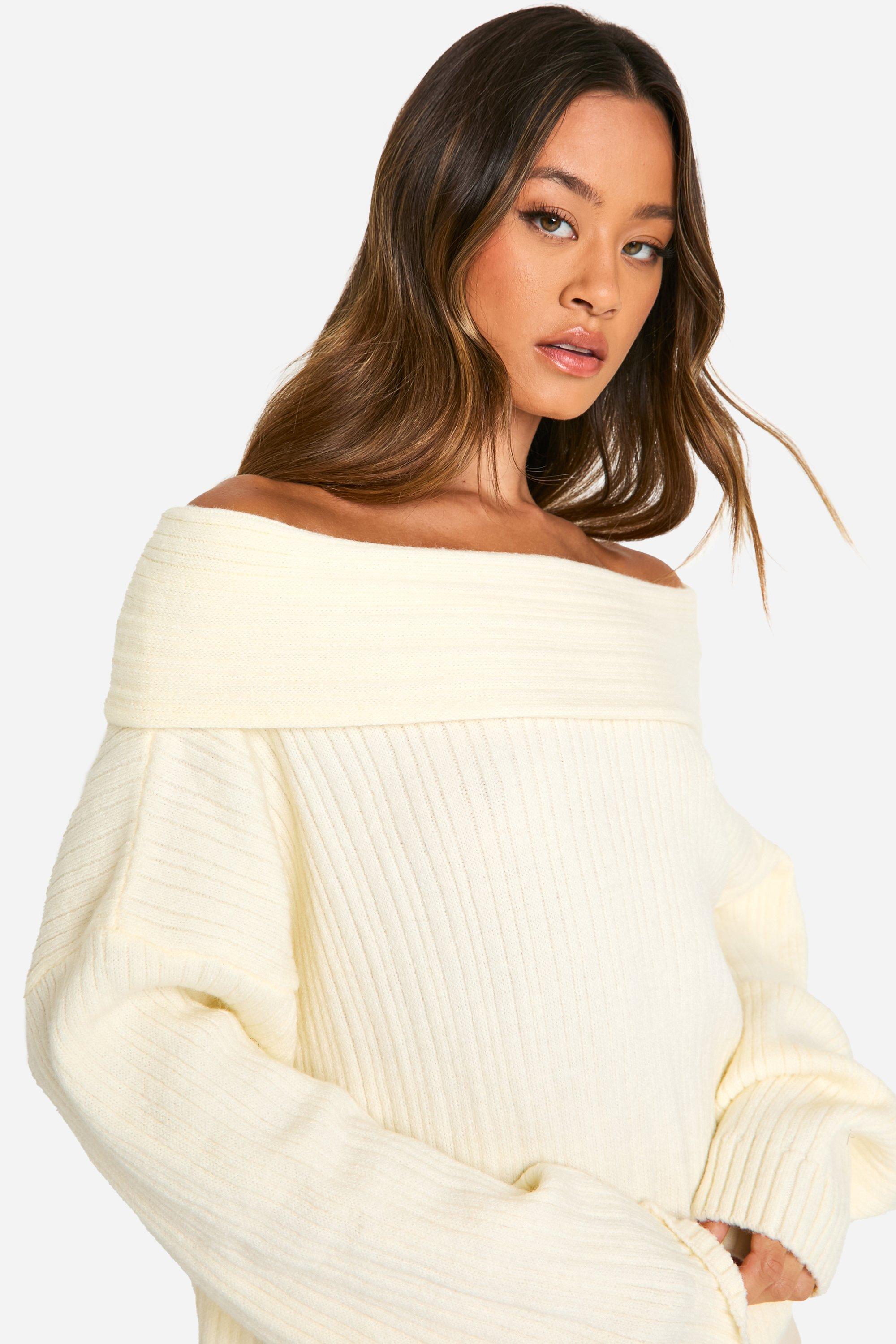 Fold Over Bardot Jumper In Cream Soft Knit EGO Very well made.