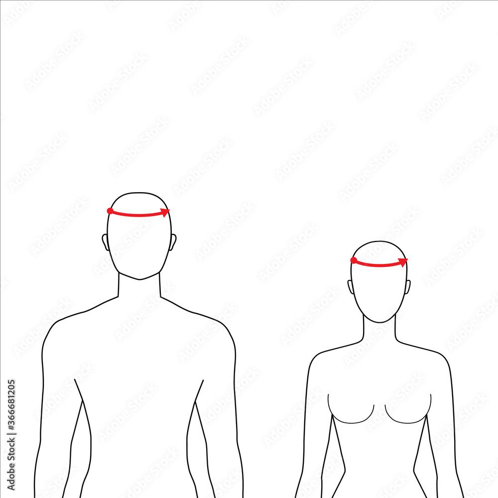 Women and men to do head measurement fashion Illustration for size chart. 7.5 head size girl and boy for site or online shop. Human body infographic template for clothes. Stock Vector Very well made.
