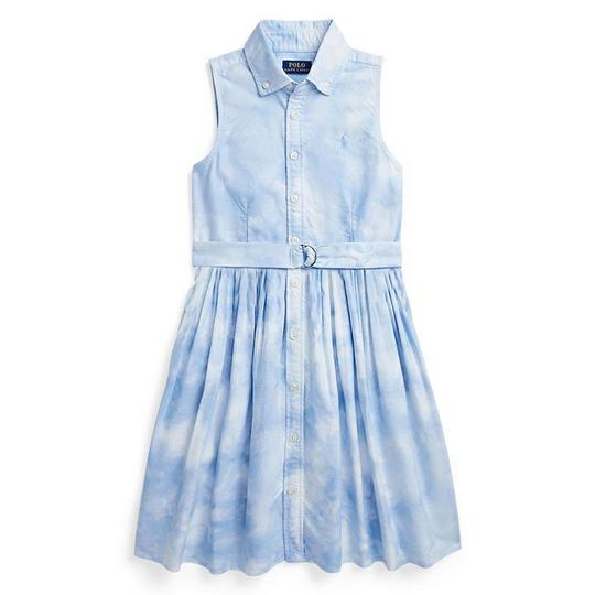 Ralph Lauren Girl s Belted Tie Dye Print Cotton Shirtdress Size 14 in Blue Tie Dye Very well made.