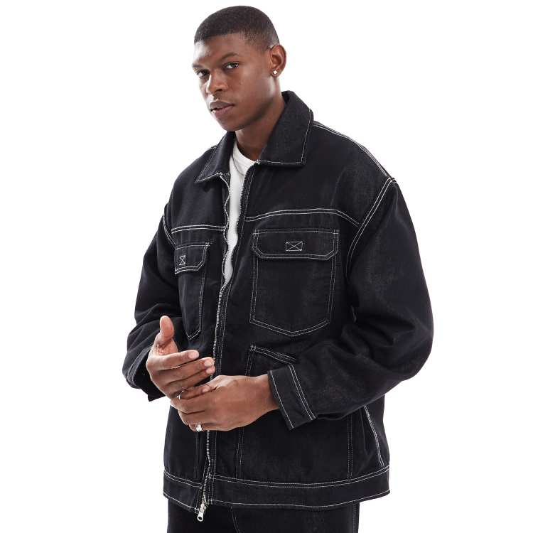 Bershka reflective denim jacket in black part of a set ASOS Very well made.