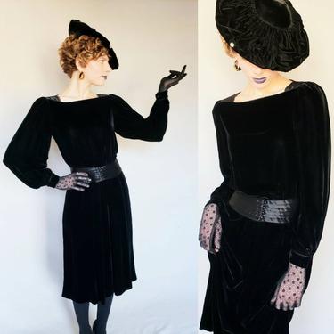 1980s Black Velvet Long Sleeved Dress I Magnin 80s Does 40 RareJule Vintage Chicago IL Very well made.