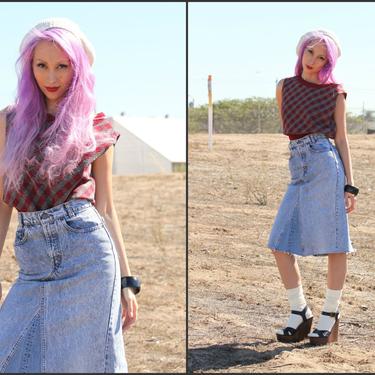 Vintage denim skirt 80s cropped acid wash high waist mini Pop Sick Vintage Very well made.